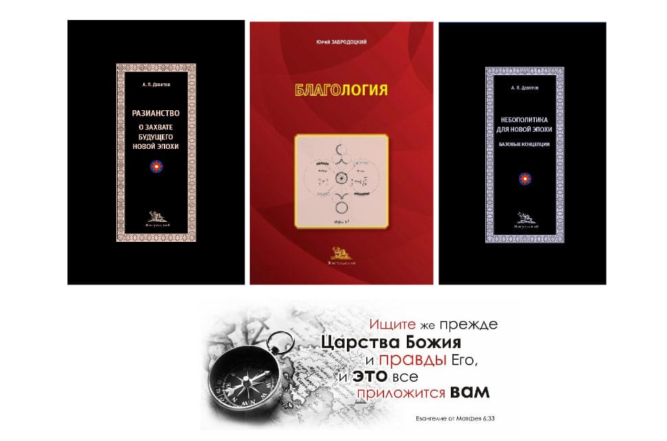 Если геополитика есть доктрина пространства, энергий и тел, то небополитика есть доктрина времени и духа, открывающая тайну власти от неба. Небополитика – это явление русского духа, нового русское слова и русского дела.